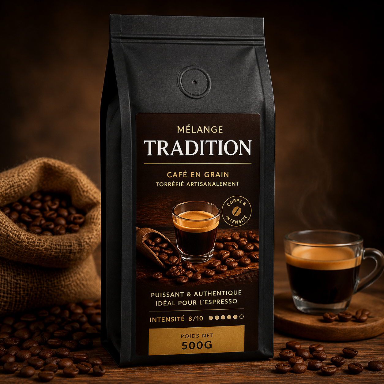 Ce mélange Tradition associe la puissance du robusta cherry à la rondeur d’un arabica du Brésil Mogiana,